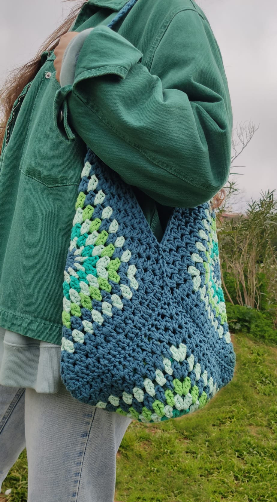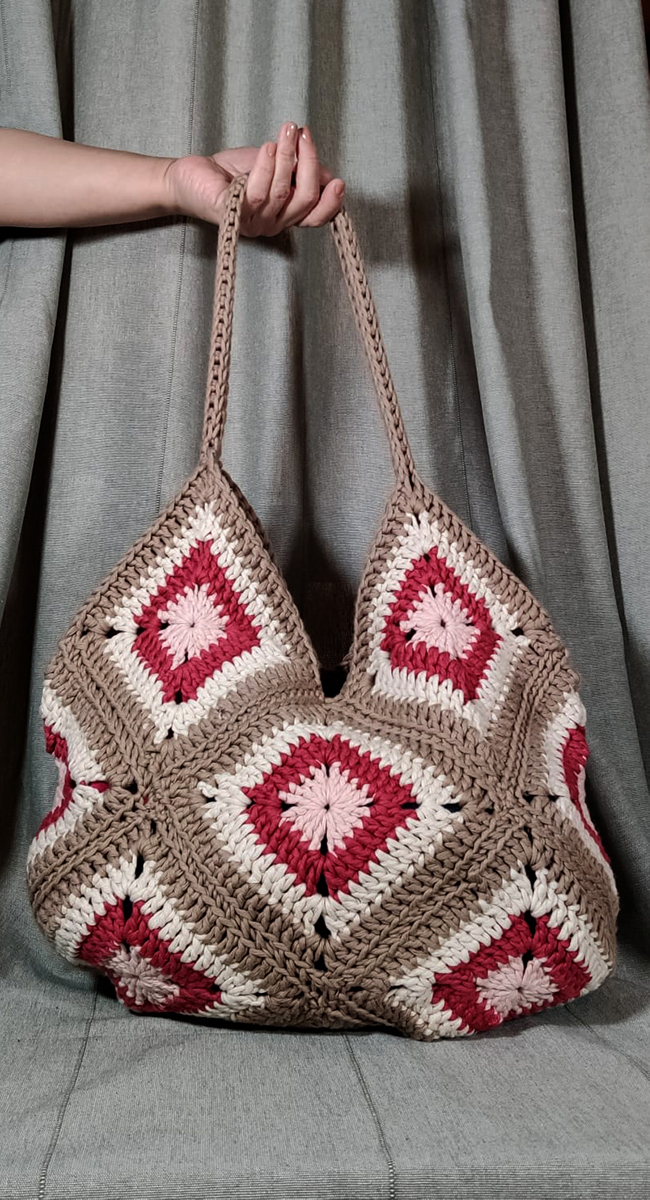 Construcción de bolsos con cuadrados de ganchillo