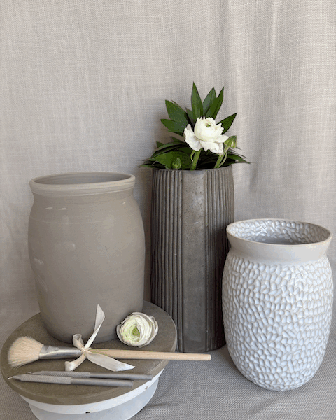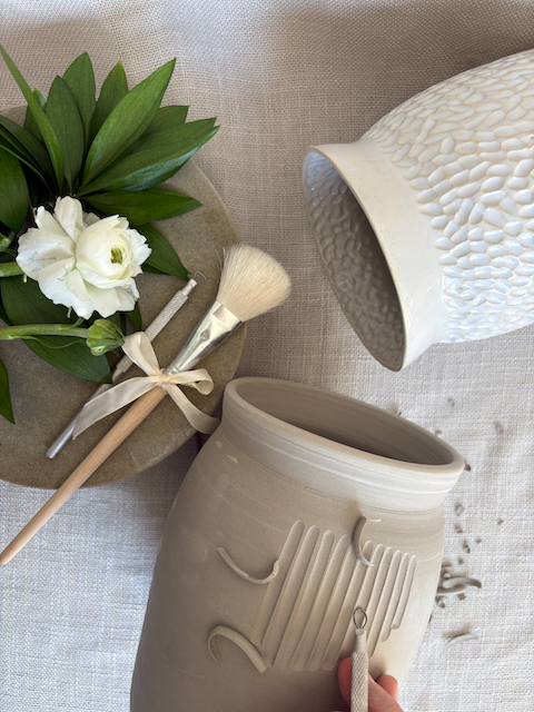 Aquest taller se centra en la decoració d'un gerro de gres blanc que haurem tornat prèviament i que tindrà una textura de pell en el moment del taller (hi ha disponibles diverses formes de gerros).